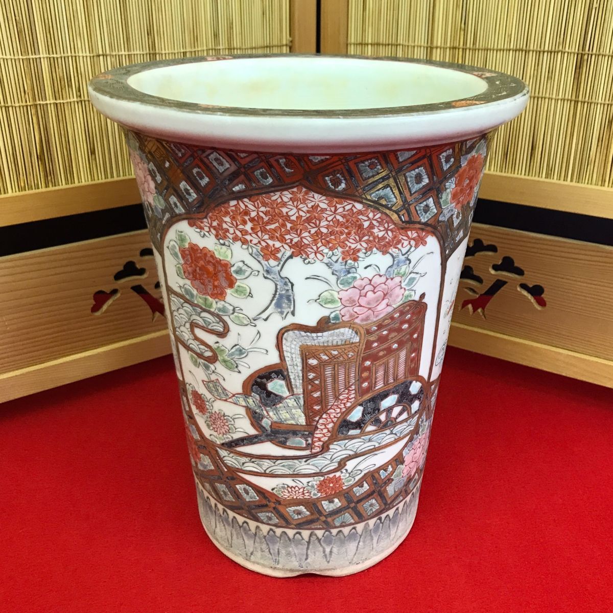 - 古い 金彩色絵 植木鉢 盆栽撥 旧家整理品 【RA1062S#100】