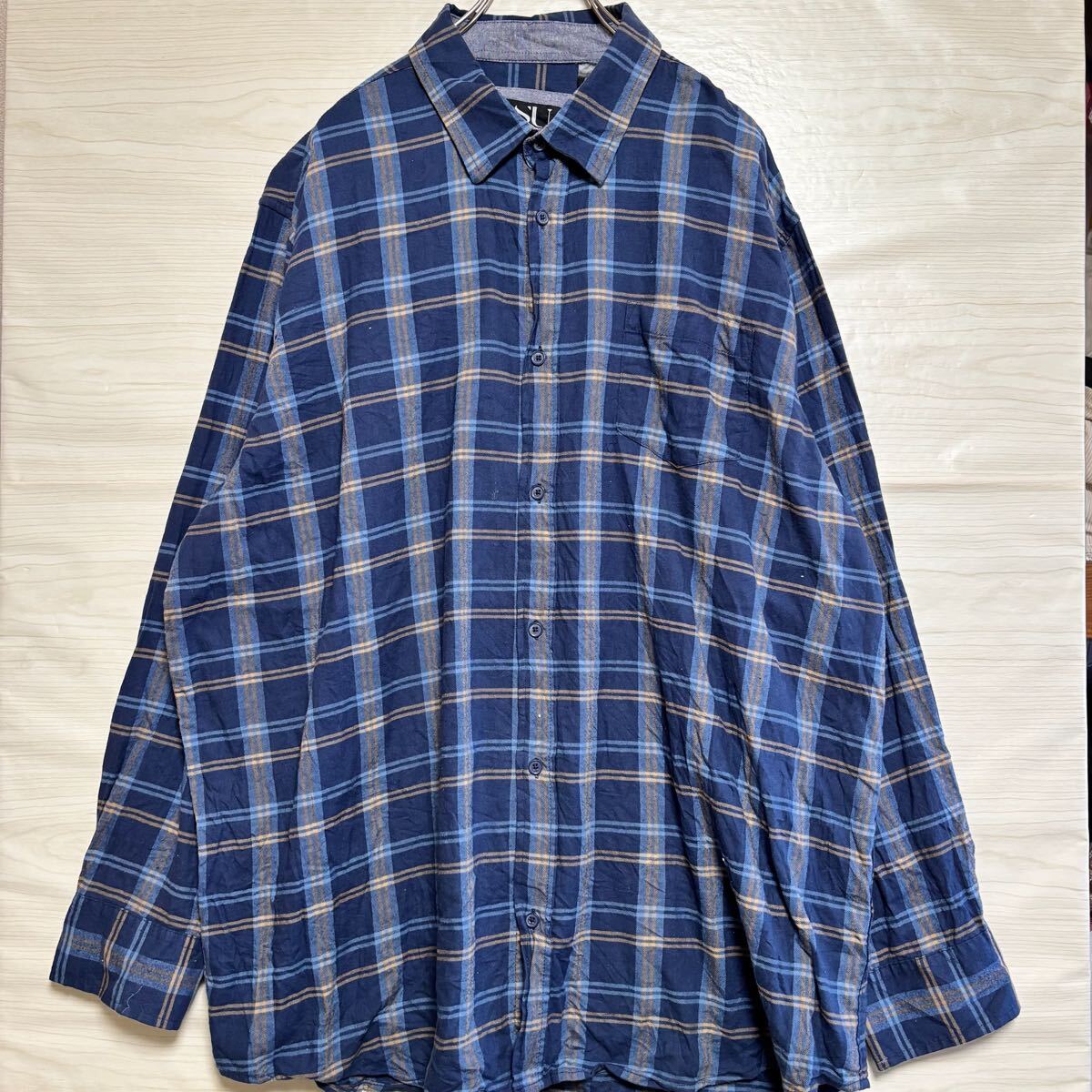 > VINTAGE ヴィンテージ 長袖シャツ レギュラーカラー チェックシャツ 胸ポケット サイズ4XL ブルー 青 コットン メンズ トップス(39)