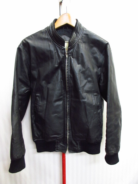 - 80s90sヴィンテージ リアルレザージャケット メンズM 黒 リブ付き牛革ジャンパー 革ジャン ライダースジャケット レザー地ブルゾン10311