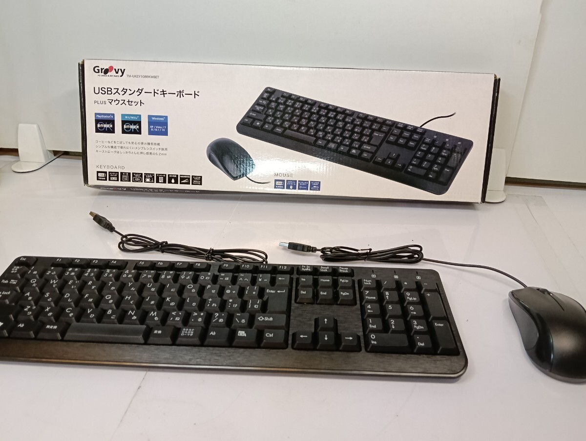 - 【1円スタート】Groovy USBスタンダードキーボード マウスセット TM-UKEY108BKMSET 日本語108キー Windows PS4対応 中古品 80サイズ