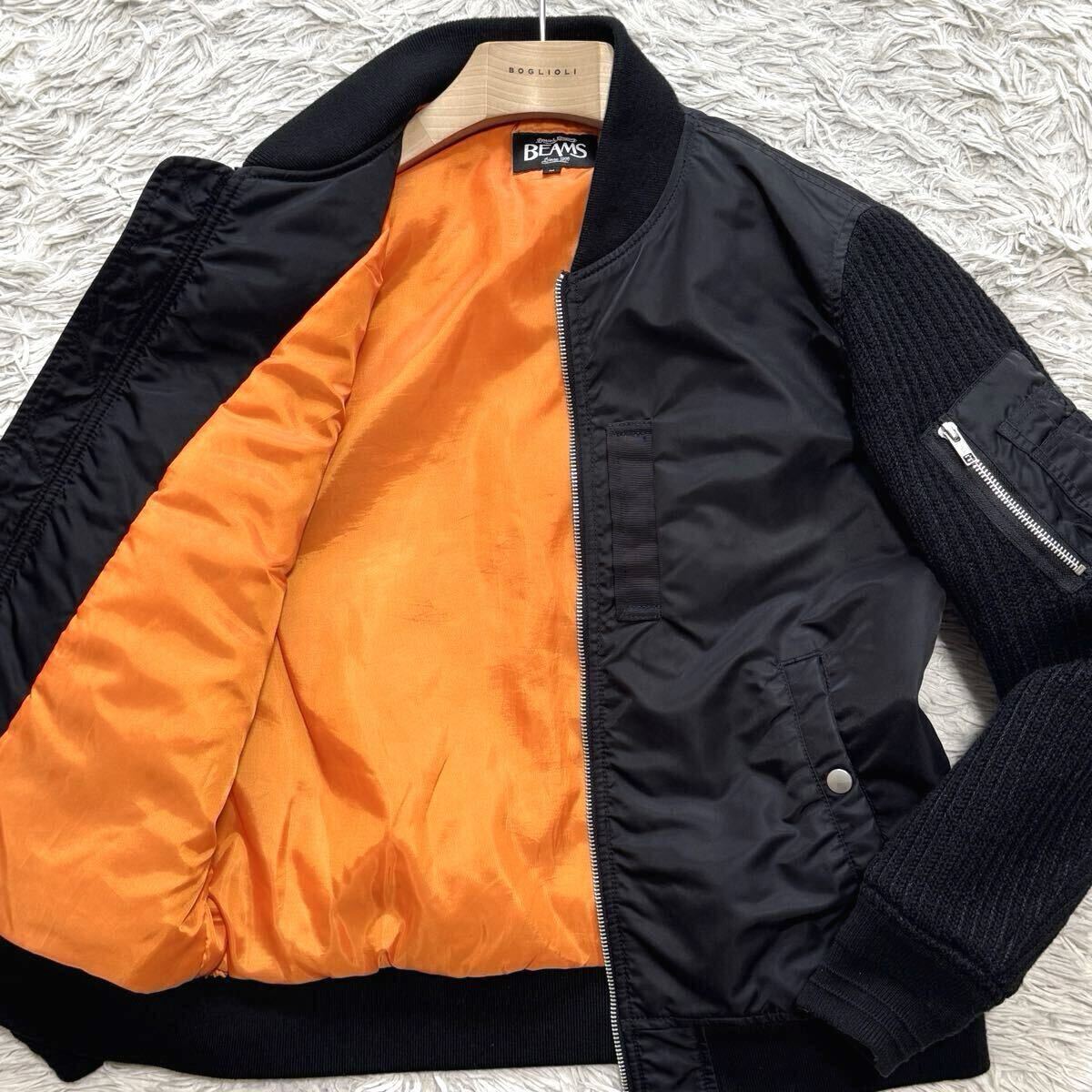 - 美品!!【至極の逸品】BEAMS 袖ニット 切替 MA-1 フライトジャケット 中綿 ブラック Mサイズ ブルゾン ボンバージャケット ディーゼル 極暖
