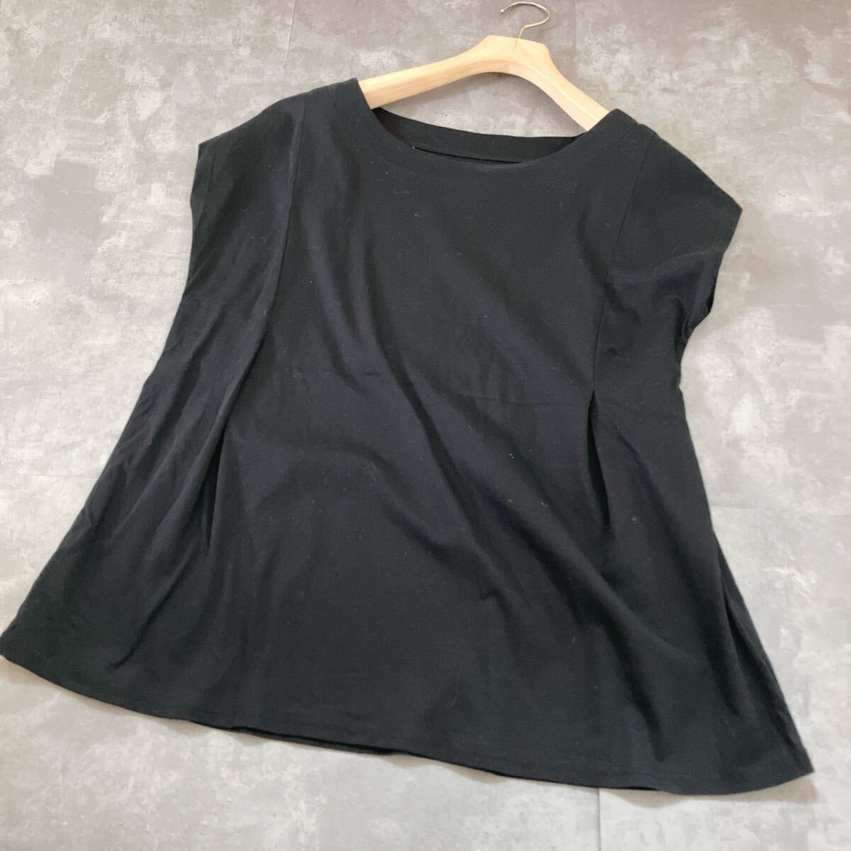 > 100円スタート リブインコンフォート Live in comfort FELISSIMOフェリシモ カットソー トップス Tシャツ 黒 L フレンチスリーブ