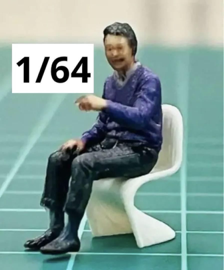 - ミニチュア★1/64★フィギュア★座った初老男性★ミニカーに★ジオラマに トミカに ミニチュアイメージ リアルフィギュア
