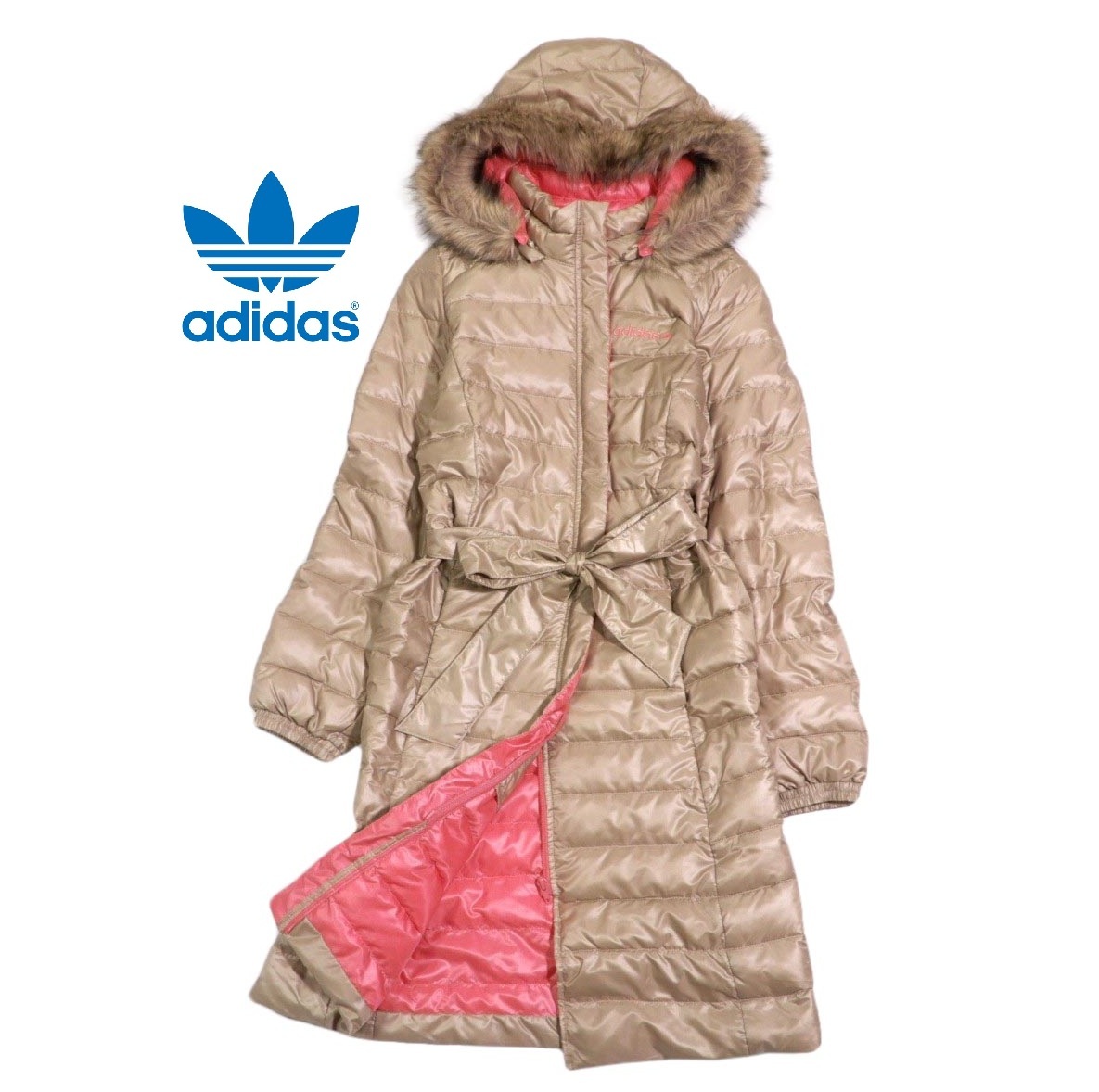 - 新品同様 アディダス adidas neo フード付き☆2WAY 軽量 ダウン コート ロング L スポーツ観戦 応援