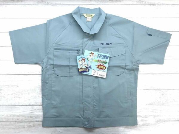 - 訳あり新品 のびのび制電作業着 デイリーダイレクト 刺繍入り 半袖 シャツ ブルゾン ジャケット 静電気帯電防止 メンズ 綿混合 LL グレー