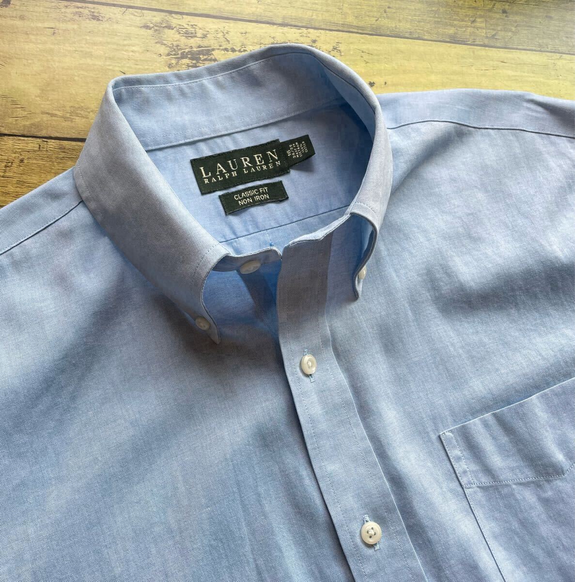 > [美品]Ralph Lauren ラルフローレン ピンポイントオックスフォード ボタンダウンシャツ ブルー 16 - 34/35 ノンアイロン Classic Fit
