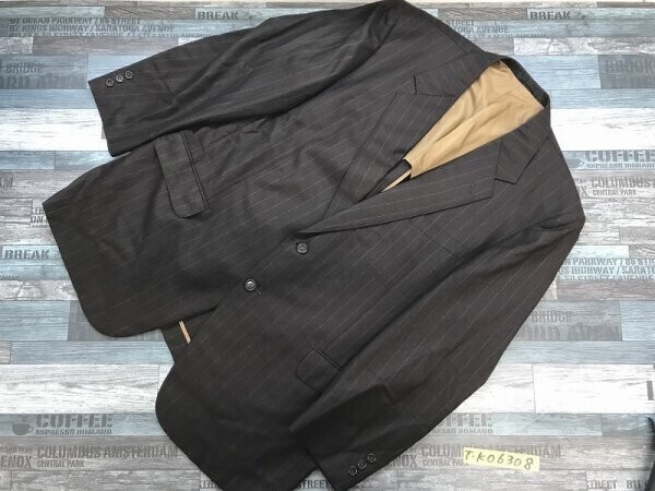 - CERAMICS メンズ 肩パッド サイドベンツ ストライプ ジャケット 秋冬 116BE ダークブラウングレー