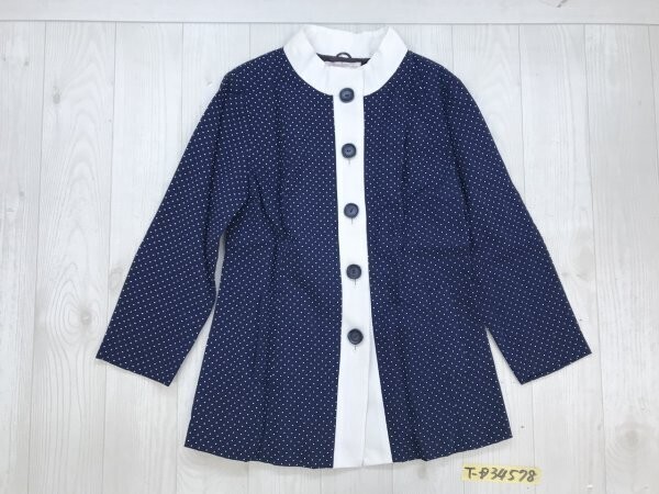 - MISUZU レディース ドット柄 サイドポケット付き カーディガン ジャケット 紺白
