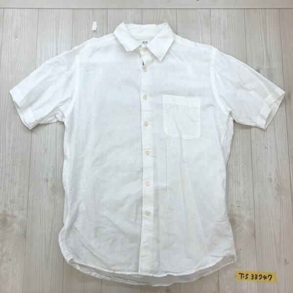 - UNIQLO ユニクロ メンズ 麻綿 胸ポケット 半袖シャツ M 白