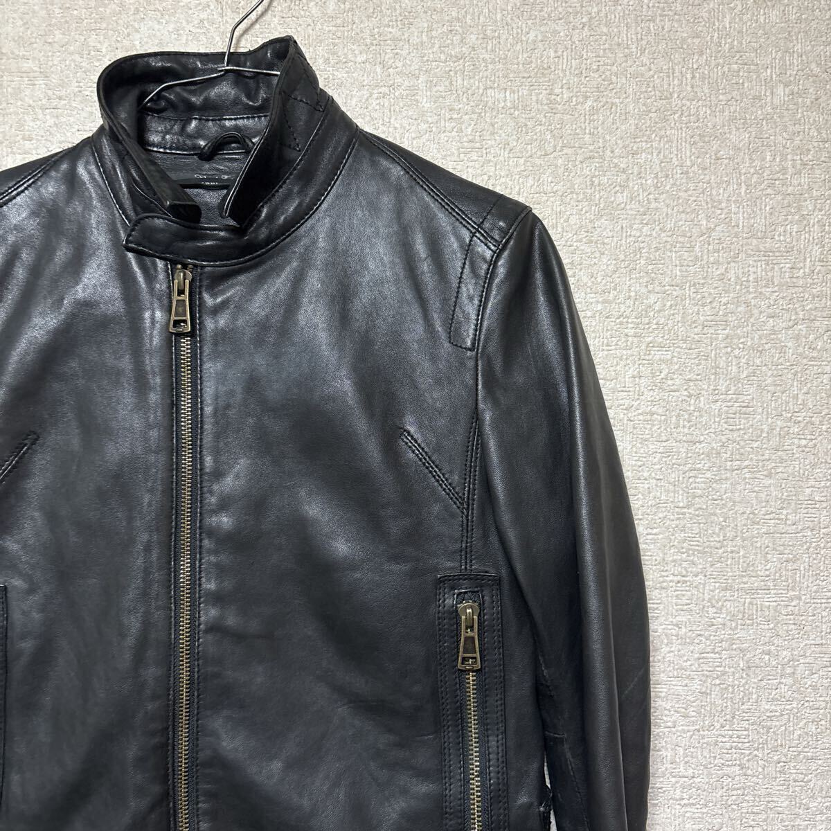 > 【Bark Tannage】ナノユニバース シープスキン 羊革 ジャケット 34 レディースSサイズ相当 ライダースジャケット レザージャケット