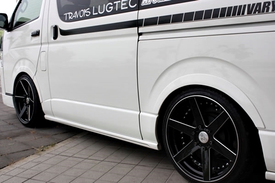 > 「ガレージベリー/Vary」200系ハイエース(TRH/KDH200系)用ローフォルム フェンダートリム(+30mm&+20mm)x1台分