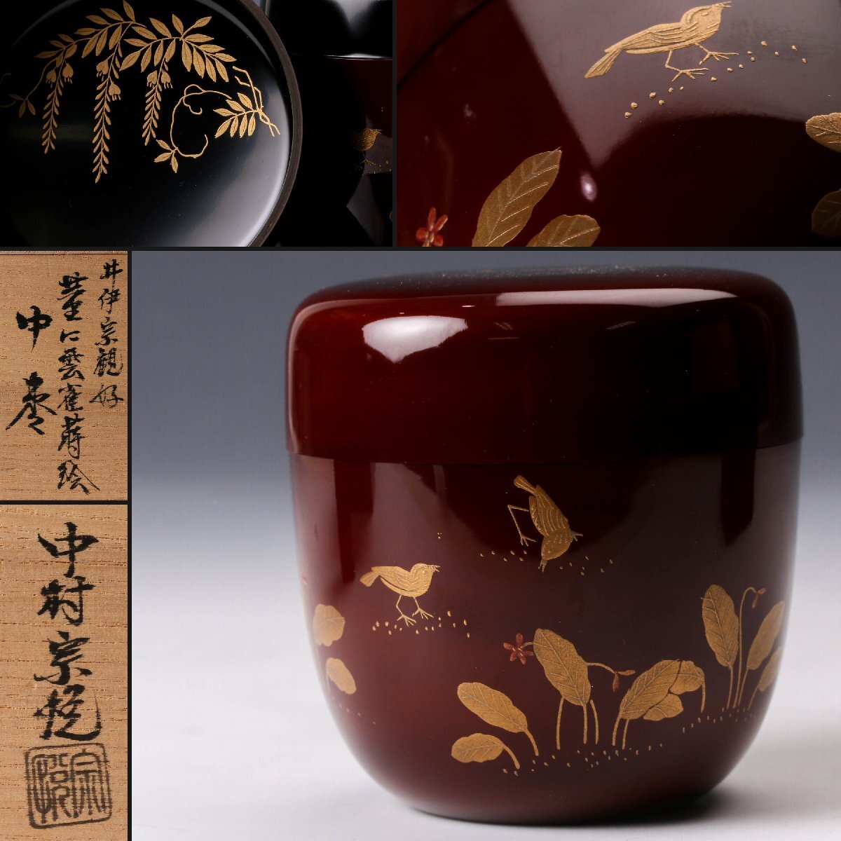【佳香】中村宗悦 井伊宗観好 菫に雲雀蒔絵 中棗 共箱 共布 茶道具 本物保証
