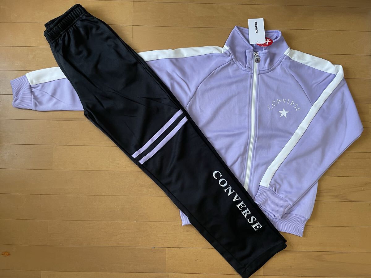 > 新品未使用 送料込み 160 converse コンバース ジャージ上下 セットアップ ラベンダー/ブラック黒 ビッグロゴ ガールズ