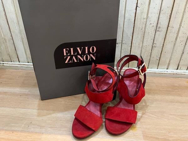 - ★ELVIO ZANON/エルビオザノン ヤギ革スウェードアンクルストラップドロップソールサンダル ROSSO サイズ36 レディース USED ★