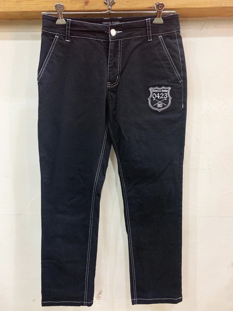 - 3105★balancedesign/バランスデザイン ワッペン×バック刺繍ブラックカラーゴルフパンツ ゴルフウェア メンズ 32 ホワイトステッチ ★