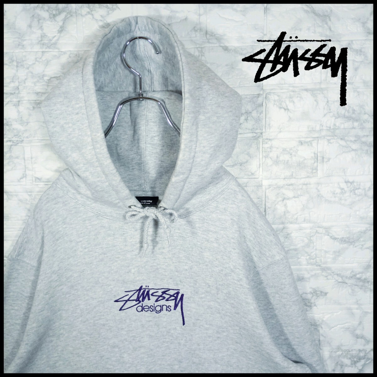 - 【STUSSY】パープルロゴ刺繍 裏起毛 プルオーバーパーカー