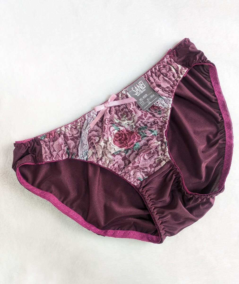 - お泊まりに☆キュートなパンティ未使用LL☆シックな薔薇柄レース☆ボルドー☆☆匿名配送可☆タグあり☆