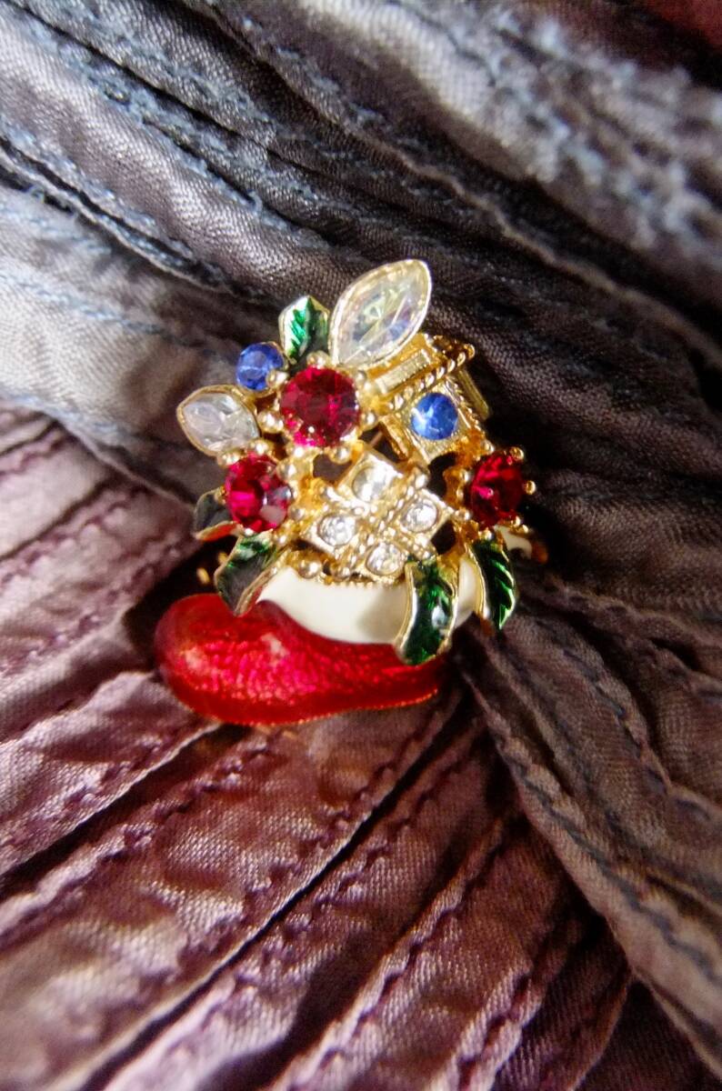 - 良品:4色カラーストーン、柊とクリスマスブーツブローチ 3-86