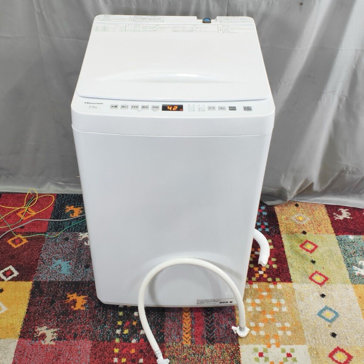 - F Hisense 2024年製 HW‐55E4W 全自動電気洗濯機 50/60Hz共用 5.5kg ハイセンス 槽洗浄 風乾燥 一人暮らし ホワイト モノトク