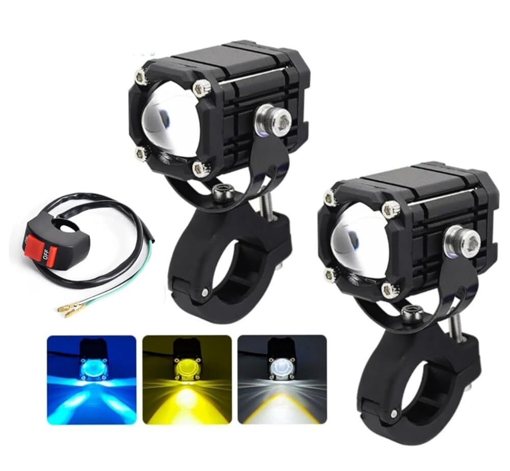 - LED フォグランプ ヘッドライト バイク 車 ホワイト イエロー ブルー ストロボ 4発光モード 12V バイク用 ライト スイッチ 2個