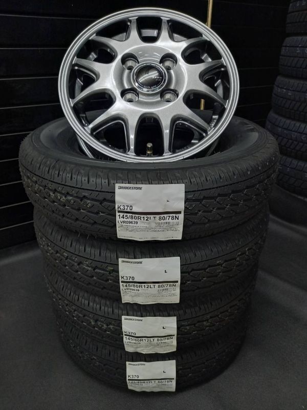 > 【2025年製】ブリヂストン K370 145/80R12 80/78+JP205 4本総額45000円 キャリー NV100 クリッパー エブリイ 車検対応145R12 6PR相当