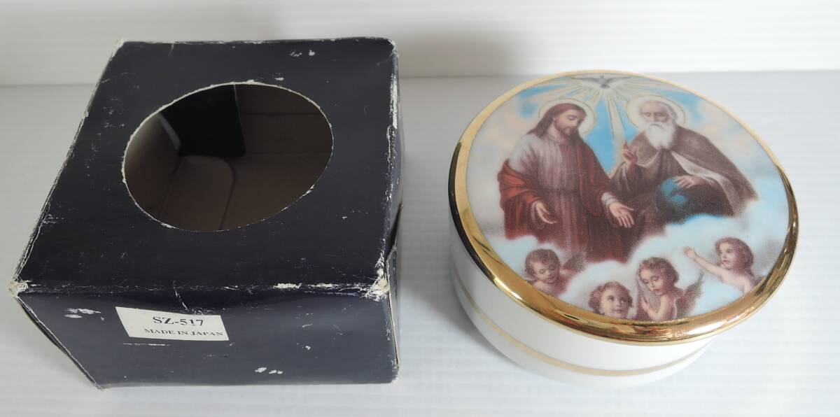 - ☆Y11■キリスト教 三位一体 蓋付 容器 陶器製■父なる神、子なるイエス・キリスト、聖霊 未使用