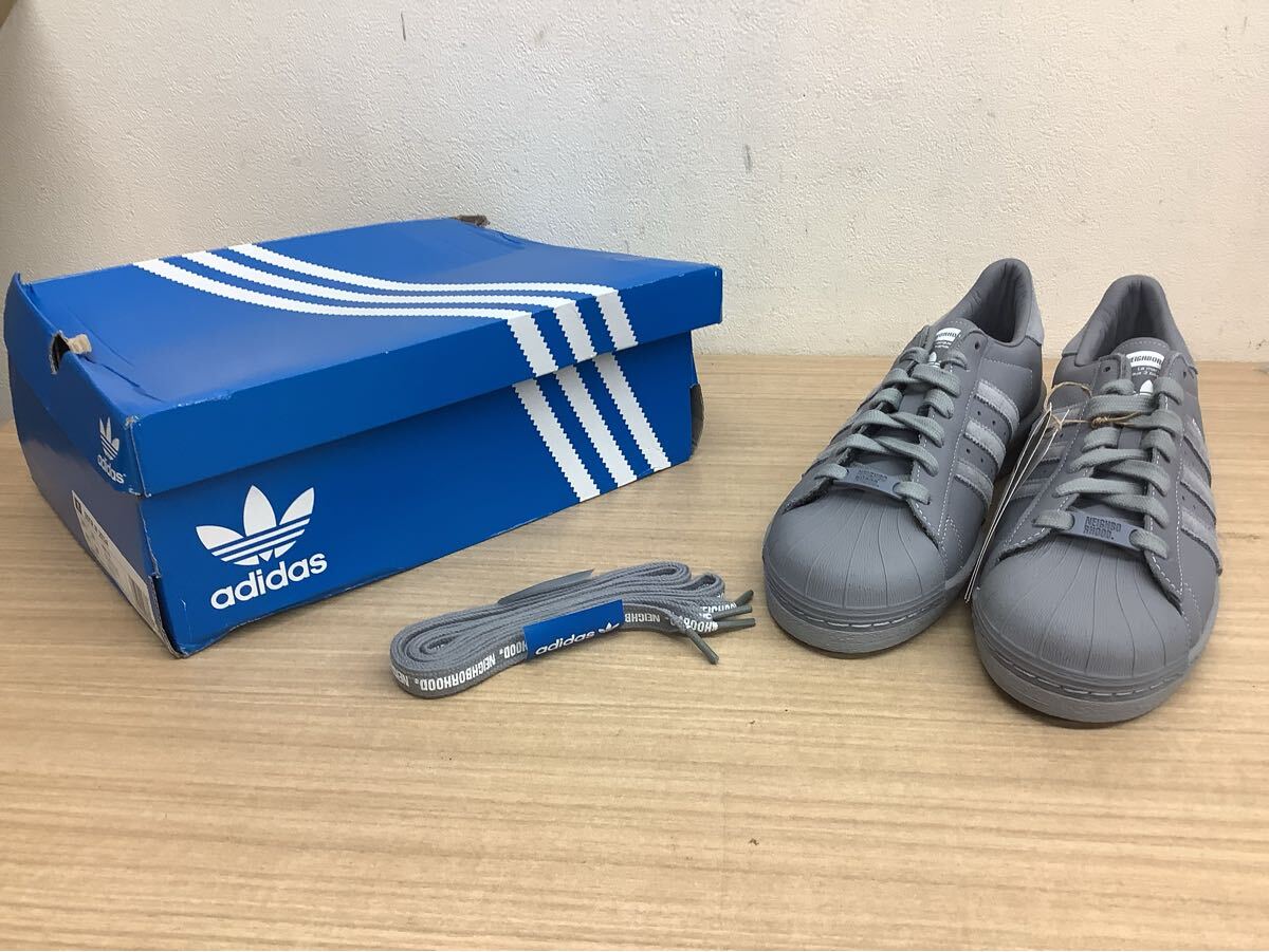 > ◯営KU101-A12さT60【埼玉発】adidas × NEIGHBORHOOD SUPERSTAR IE6115 28.5cm グレー メンズスニーカー 新品 箱付き