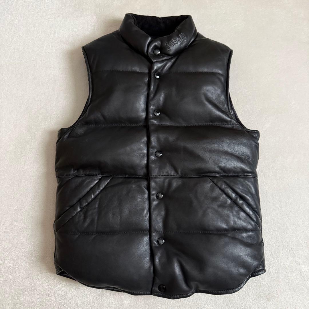 > Schott レザーダウンベスト 羊革 ブラック 刺繍 M