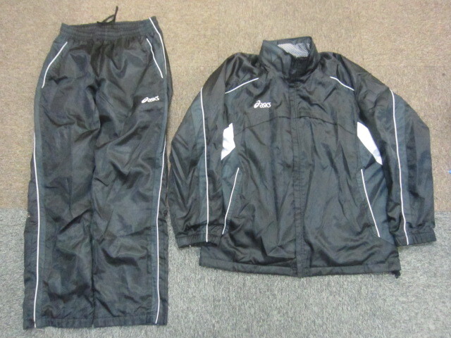 > アシックス ナイロンジャージ上下セットアップ メンズL 黒 裏地付きウインドブレーカー上下 トラックジャケット&ジャージパンツ 11019
