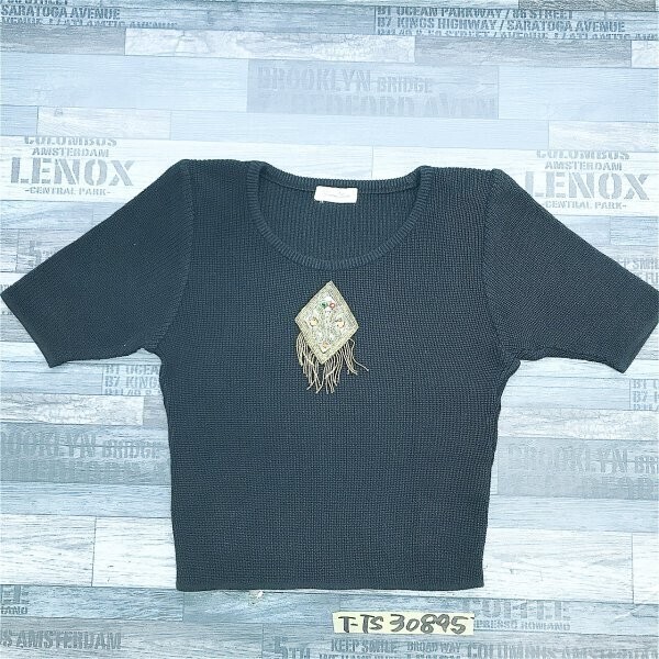 - PRIMA CLASSE レディース 日本製 ビジュー装飾 半袖ニットソー M 黒