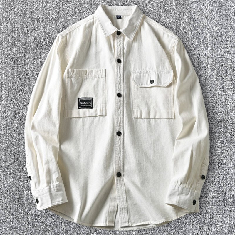 - 欧米スタイル 国内未販売 新品 メンズ長袖シャツ カーゴ ポケット ウォッシュドコットン 春秋 ゆったり 日常 カジュアル /白T6021-2XL