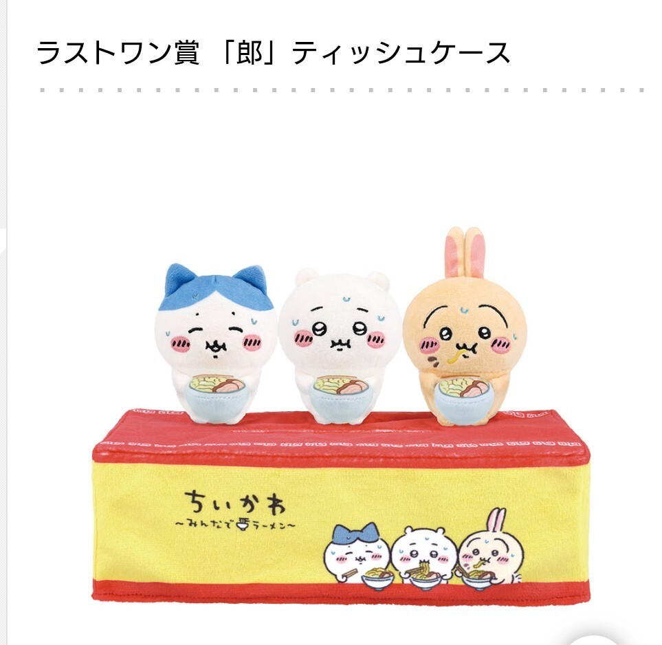 > ちいかわ 一番くじ ラストワン賞 「郎」ティッシュケース みんなでラーメン ハチワレ うさぎ ぬいぐるみ ティッシュボックスカバー ウサギ