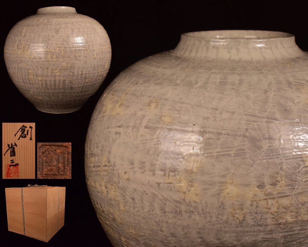 U887 【泉美】創 谷川省三造 波紋化粧 壷 壺 共箱入拍卖