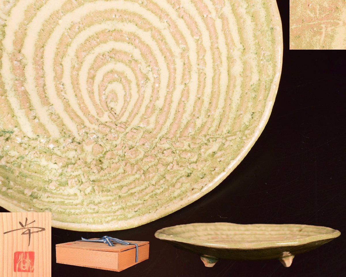 Z39 【泉美】古橋尚作 御深井 須勾流文 皿 共箱入