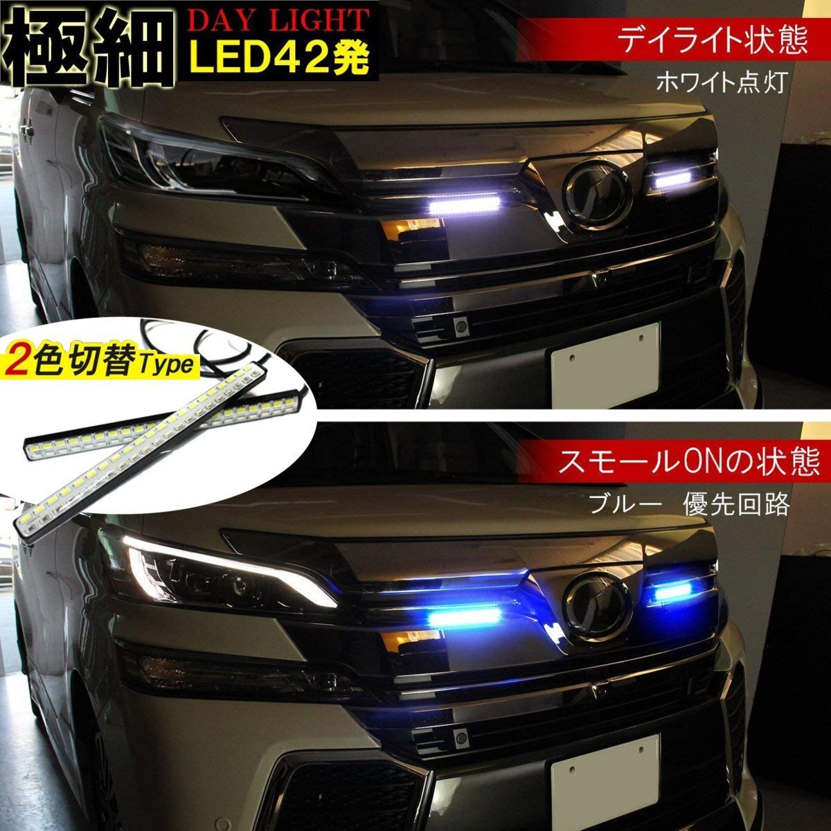 - デイライト led 2色発光 ホワイト×ブルー 極細 面発光 SMD42灯 左右セット