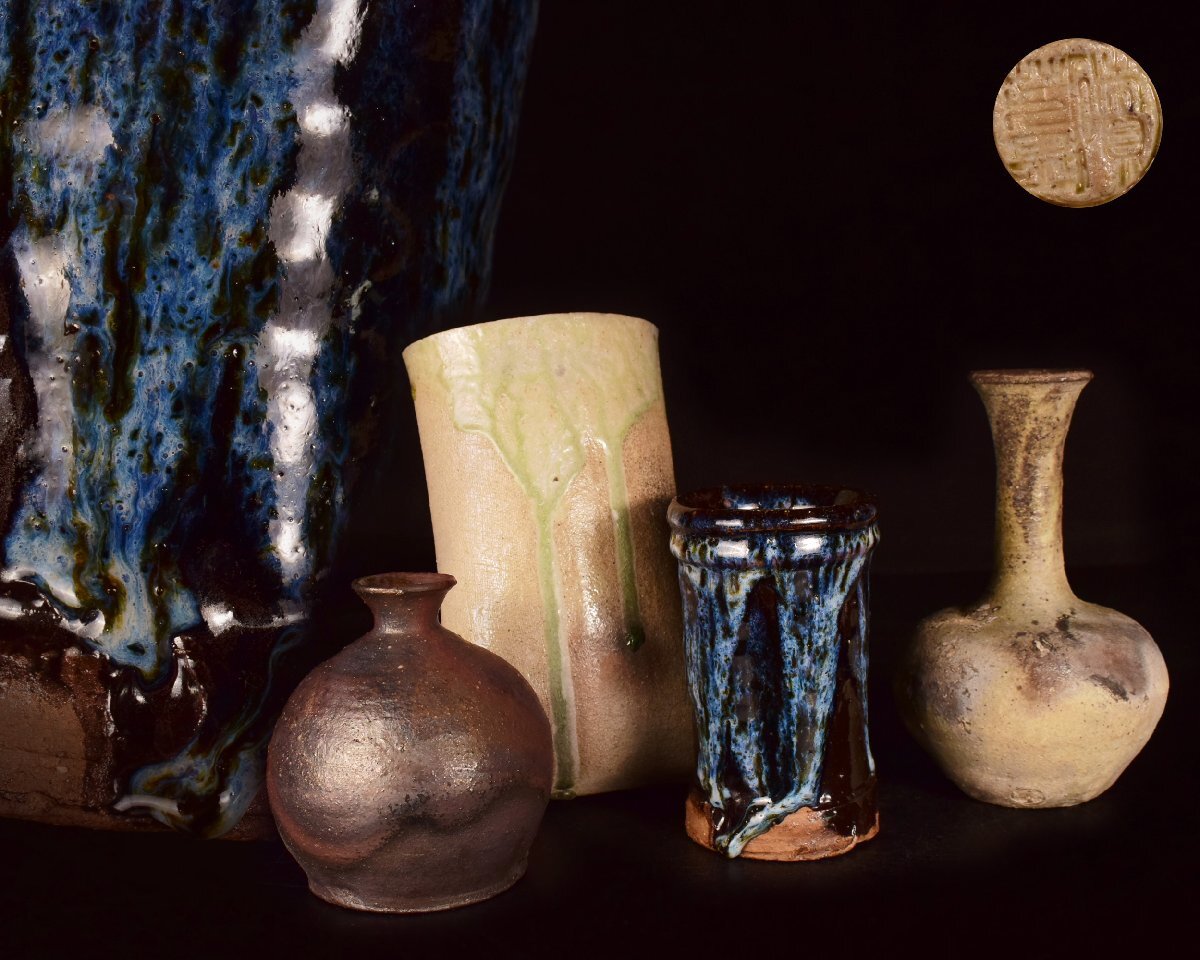 X146 【泉美】一輪挿し 花瓶 4点 掛花入 花生 花器