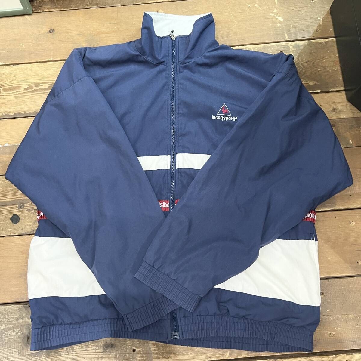 - Lecoqsportif/ルコックスポルティフ レトロ ナイロンジャケット ジャンパー アウター ネイビー ホワイト USA Mサイズ メンズ used