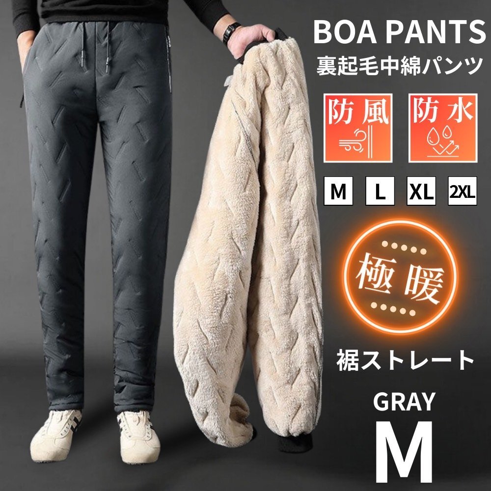 - 中綿パンツ 裏ボアパンツ メンズ レディース 防寒 蓄熱 防風 撥水 防水ジッパー 暖パンツ ゴルフパンツ 裾ストレート グレー M