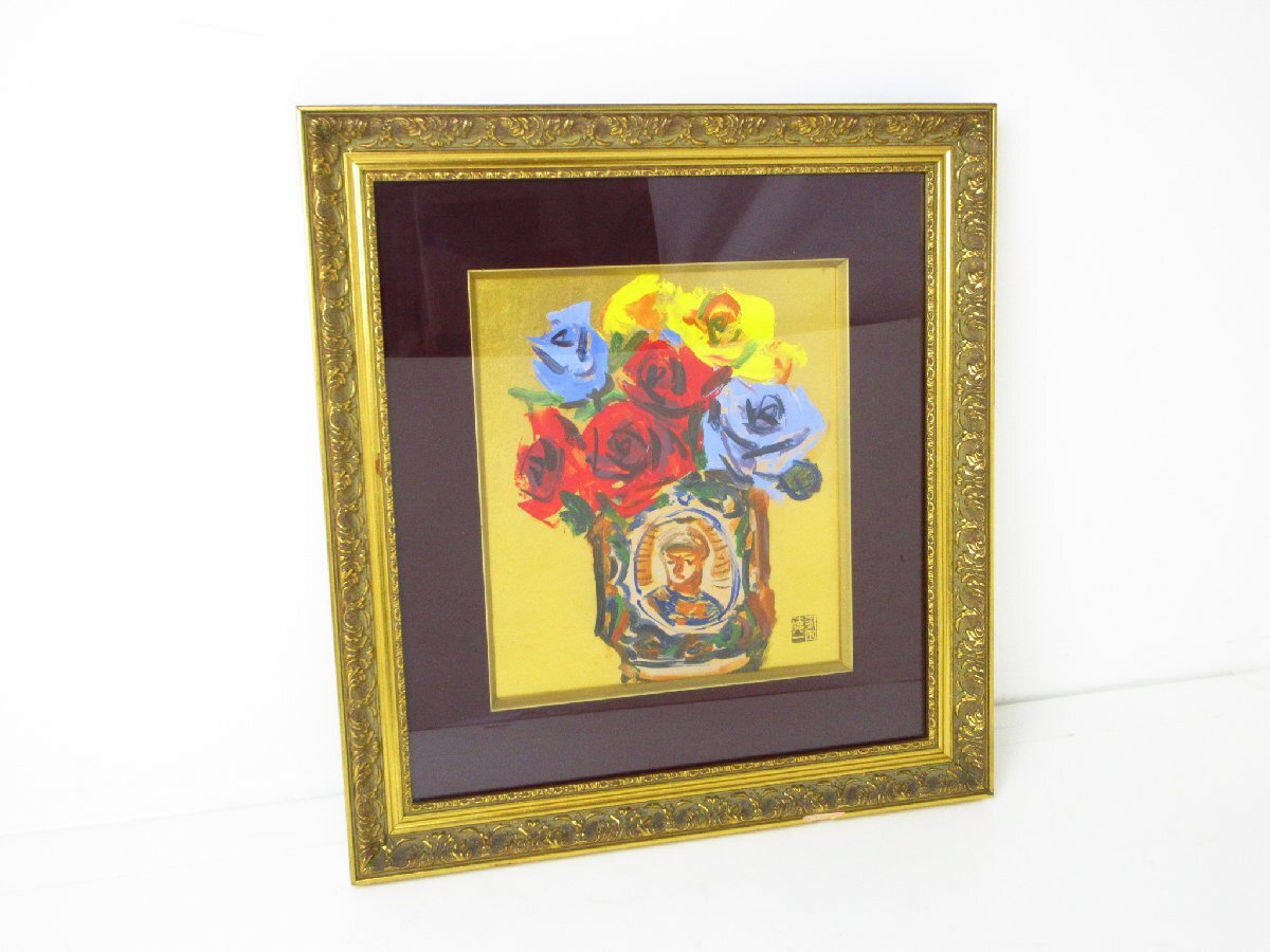 絵画 有田徳一「マジョリカ壺のばら」サイン有 美術品 / 120 (SGKY024589)
