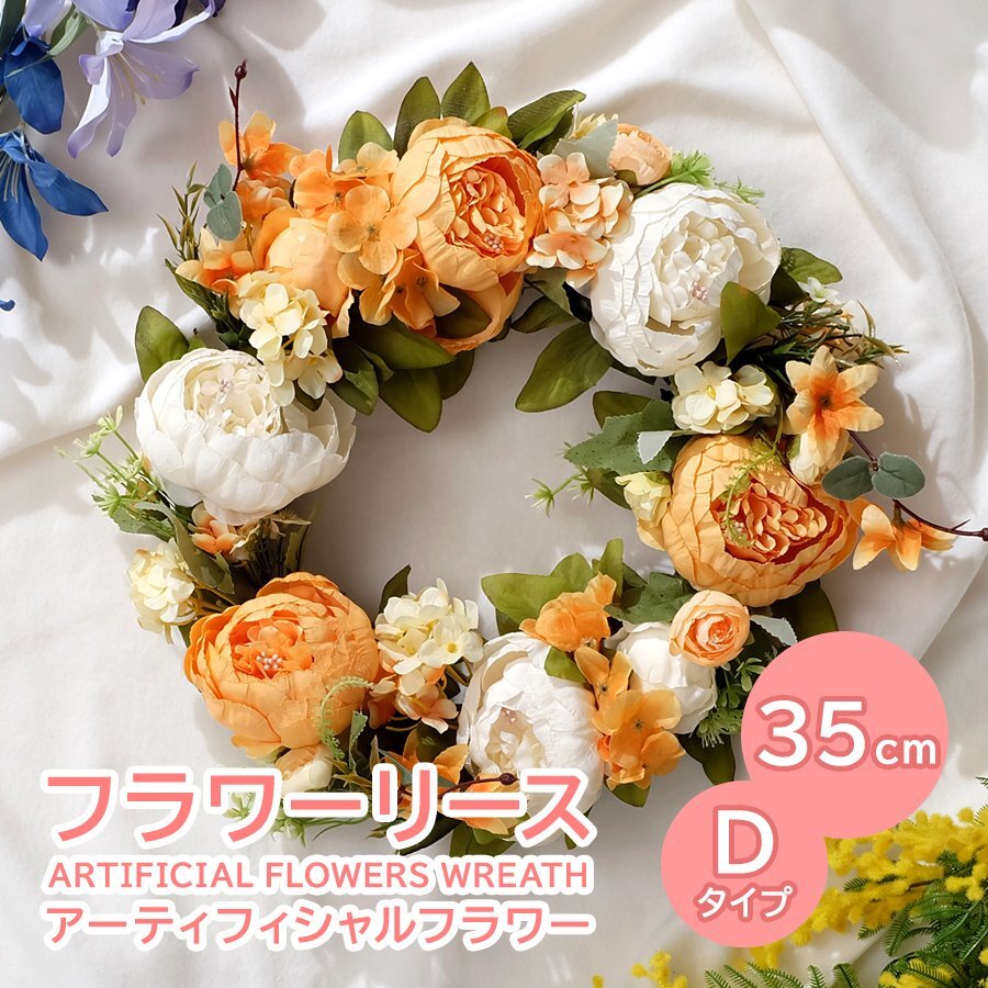> フラワーリース 35cm Dタイプ 花輪 装飾 雑貨 小物 インテリア ディスプレイ ウォールオブジェ デコレーション 置物 造花 フェイクフラワー