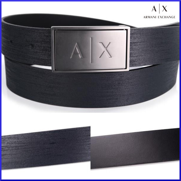 > 新品本物ARMANIアルマーニAX伊製【両面!!スクラッチ加工×黒色】本革レザーカット長さ調節OKビジネスドレスベルト/メンズフリーサイズ