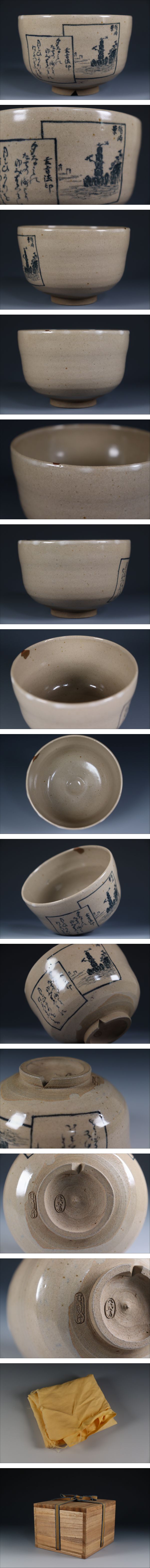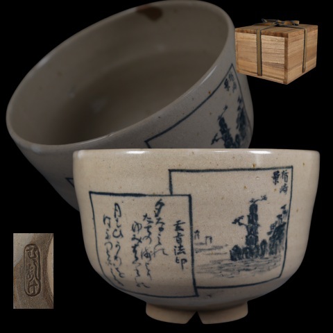 - 蔵出し品 虫明焼 真葛香山 染付絵 茶碗