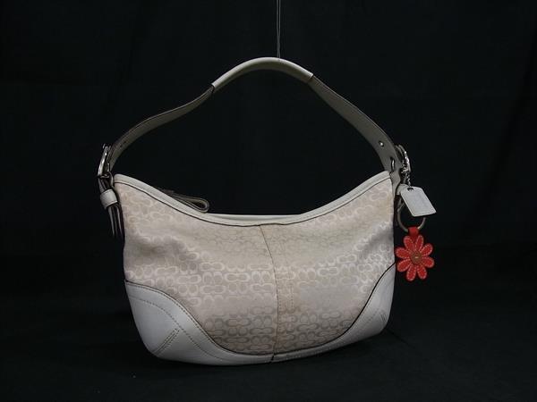 > 1円■美品■ COACH コーチ 6351 ミニシグネチャー キャンバス×レザー ハンドバッグ ショルダー 肩掛けかばん ライトベージュ系 FV3416