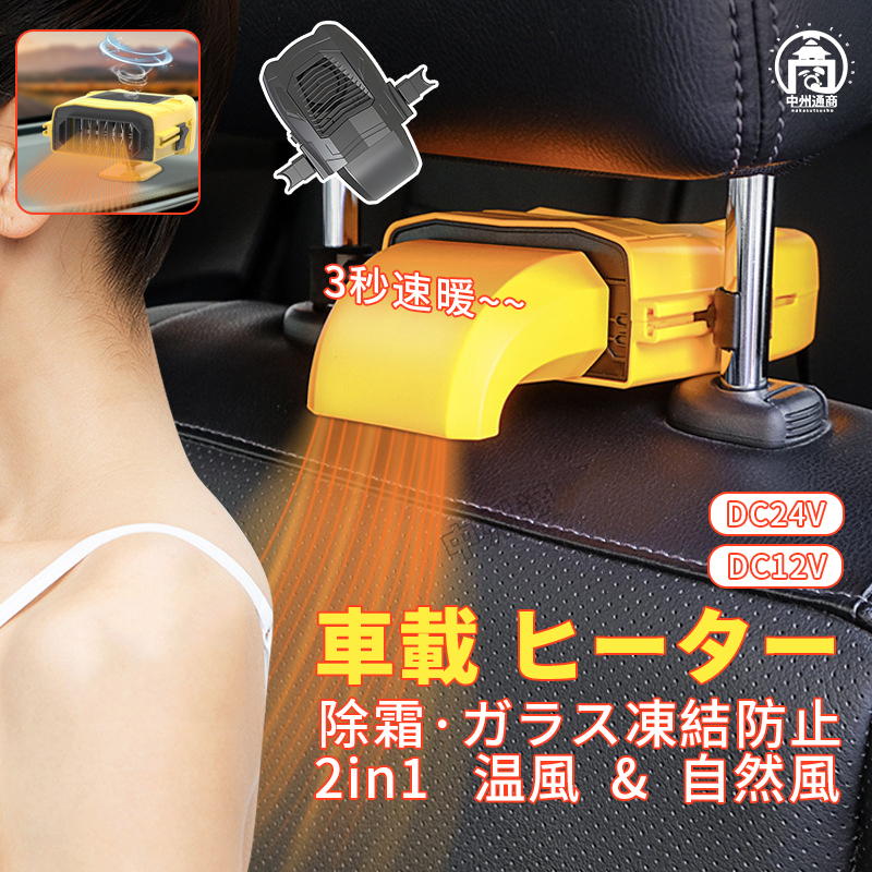- 車載ファンヒーター シガーソケット 温風 カーヒーターファ 車中泊 24V/12v 車載 暖房 取付簡単 コンパクト 除霜 上下 左右回転 除霜/除霧