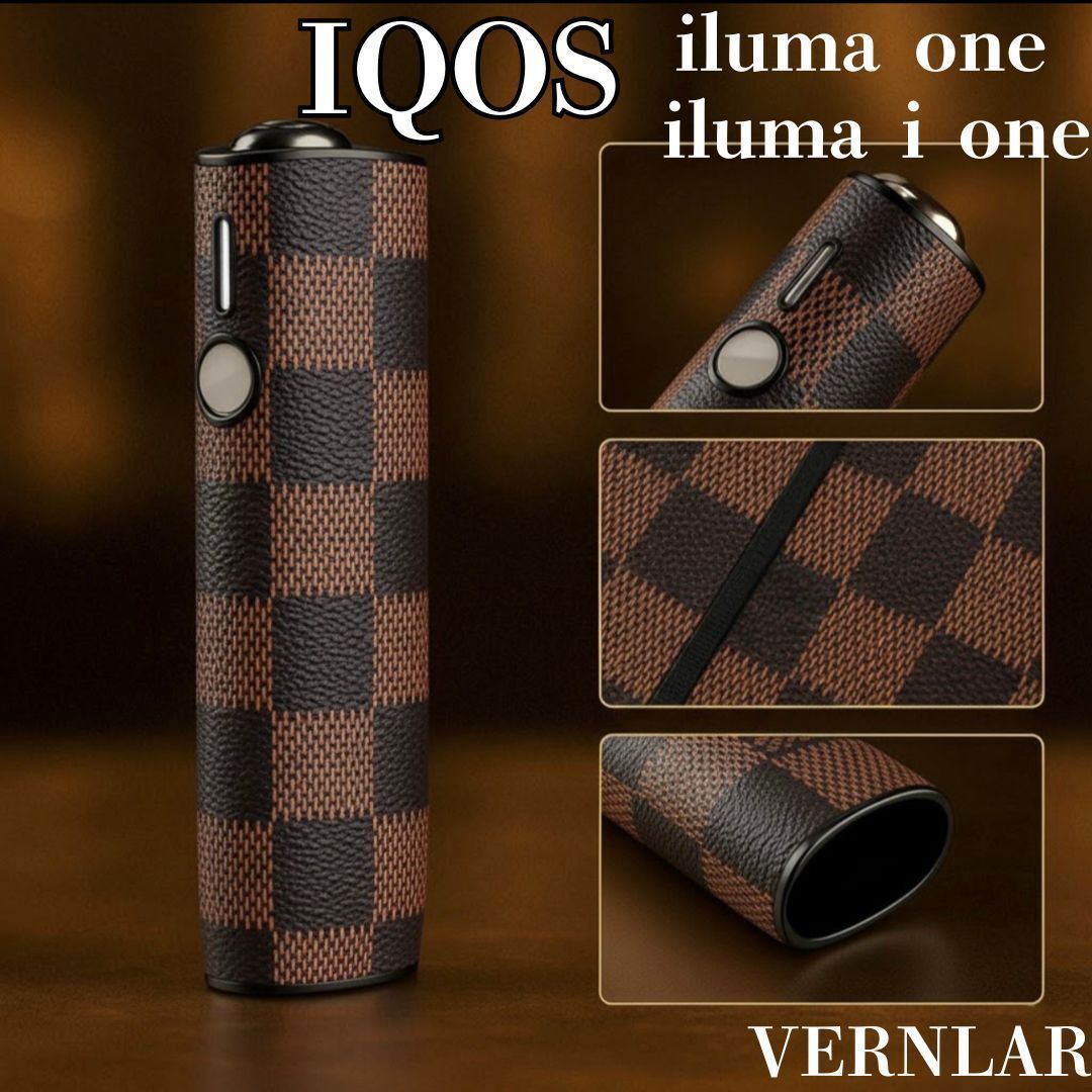 - IQOS イルマ i ワン ケース チェック柄 ブラウン 高級PUレザー 保護カバー メンズ レディース アイコス イルマ アイ ワン iluma i one
