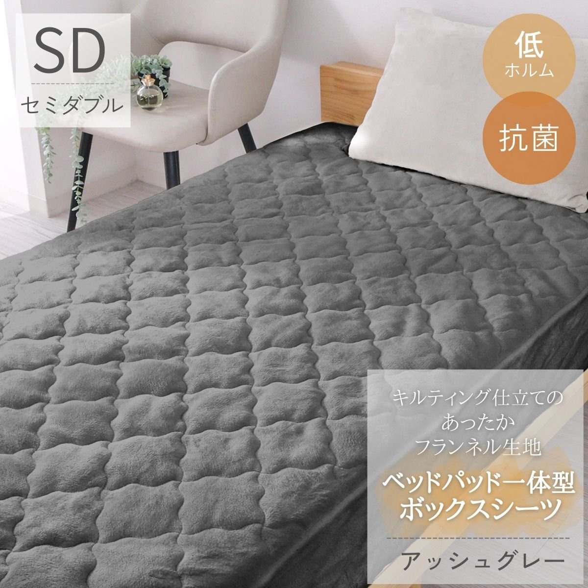 - 【セミダブル アッシュグレー】ボックスシーツ 一体型 敷きパッド ベッドパッド 冬 フランネル 洗える 暖かい シーツ マットレスカバー