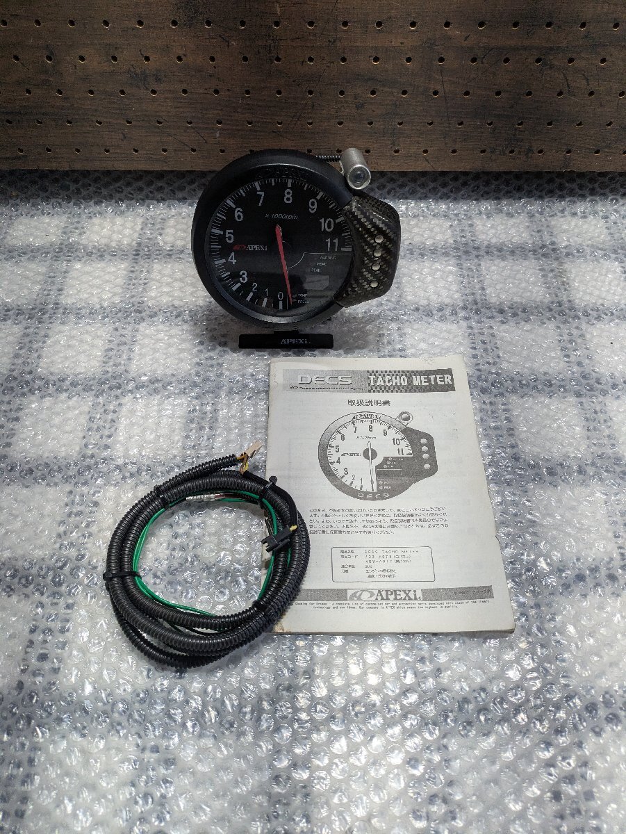 > APEXi タコメーター 120パイ カーボン 回転数ELメーター 絶版廃盤 超美品 アペックス 温度センサー追加して水温油温 追加で油圧燃