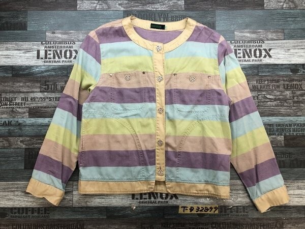 - MICMAC レディース ダブルポケット ボーダー 薄手 日本製 ジャケット パステルベージュ