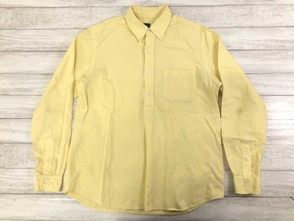 - ビームスF BEAMS F レトロ ユーロ トラッド クラシック ハーフボタン ボタンダウン 長袖 ドレス シャツ メンズ コットン100% L 黄色