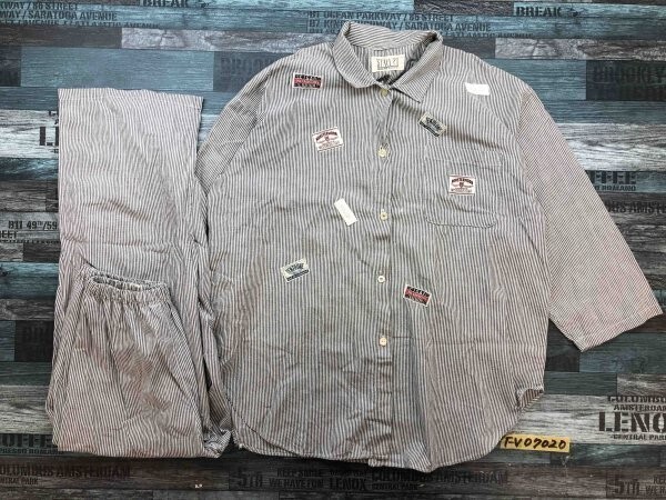 - STAFF 21 レディース 胸ポケット ストライプ 前ボタン ルームウェア 上下セットアップ グレー白